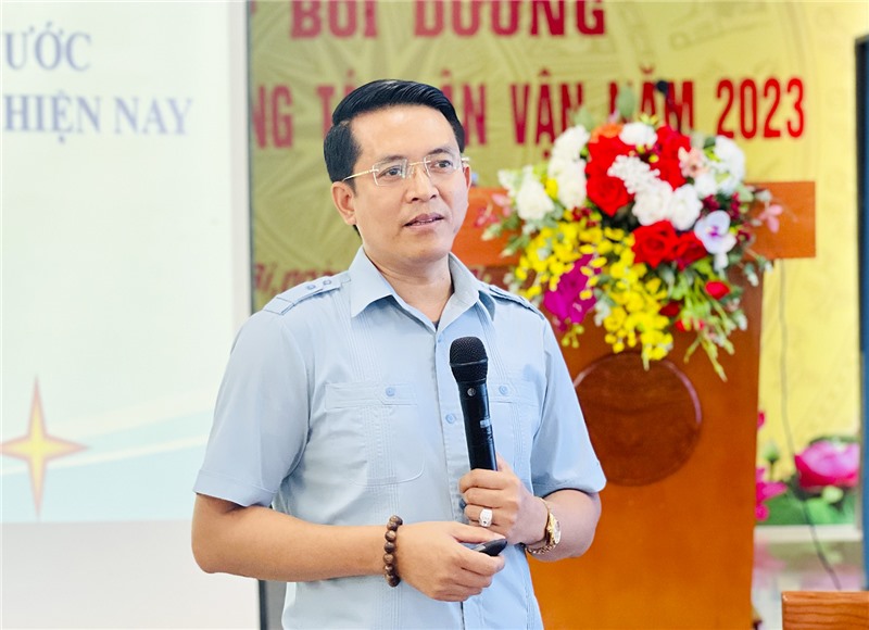 Đồng chí Vũ Ngọc Tuấn, Phó Trưởng ban Dân vận Tỉnh ủy thông tin nội dung chuyên đề bồi dưỡng.