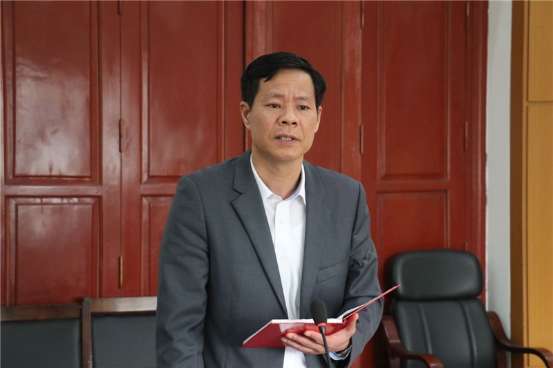 Đồng chí Phạm Xuân Thành - Bí thư Đảng bộ, Chủ tịch UBND phường Nam Khê báo cáo tại cuộc làm việc.