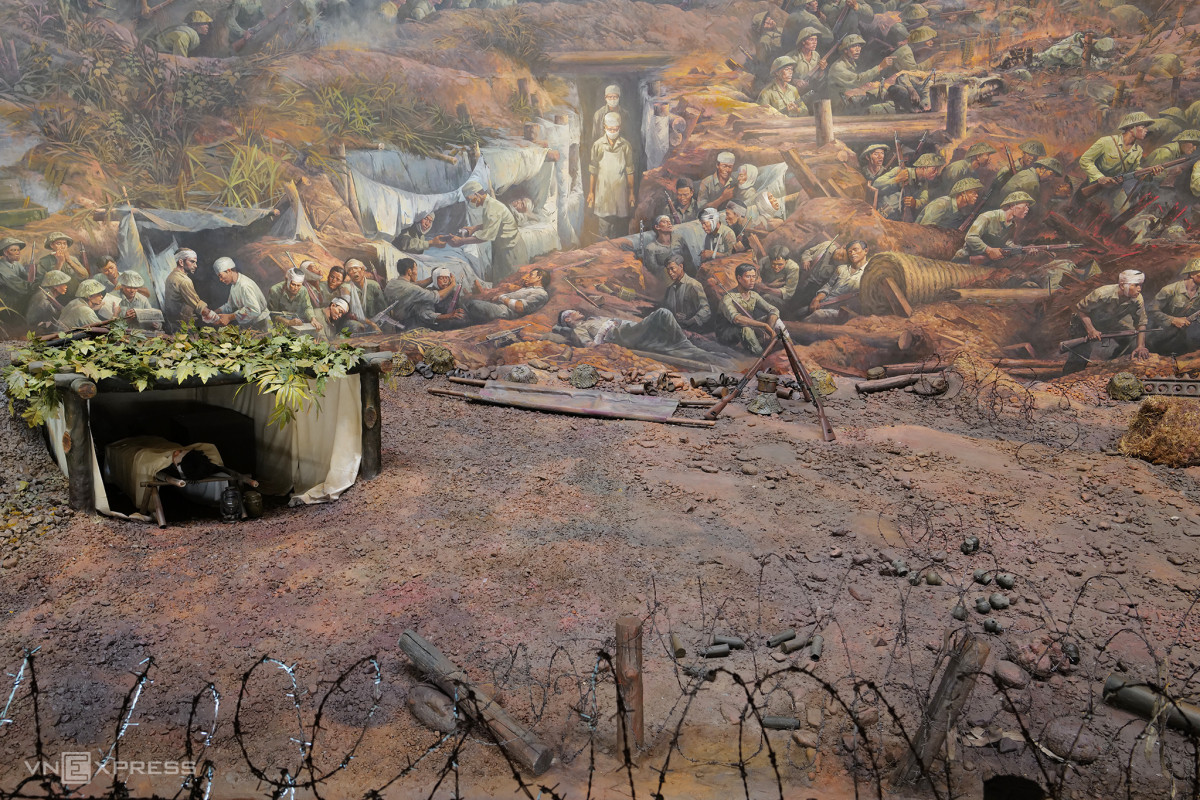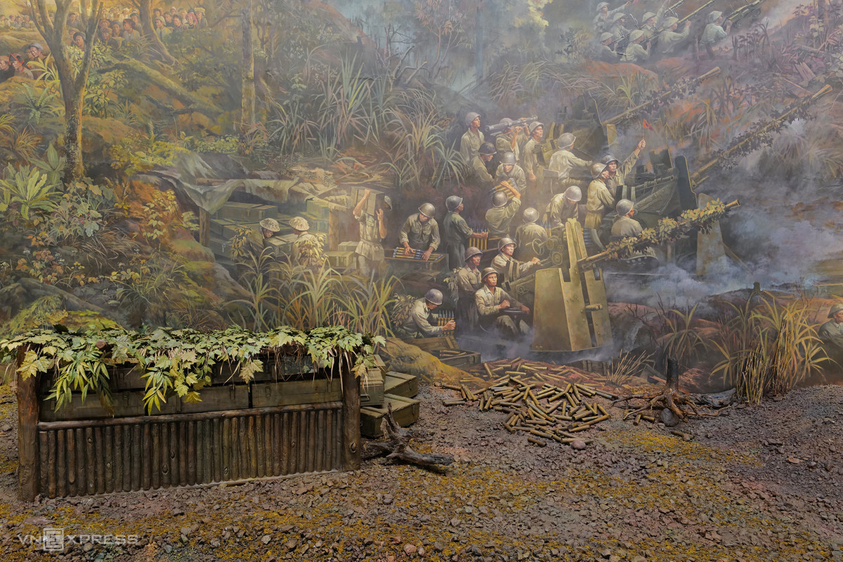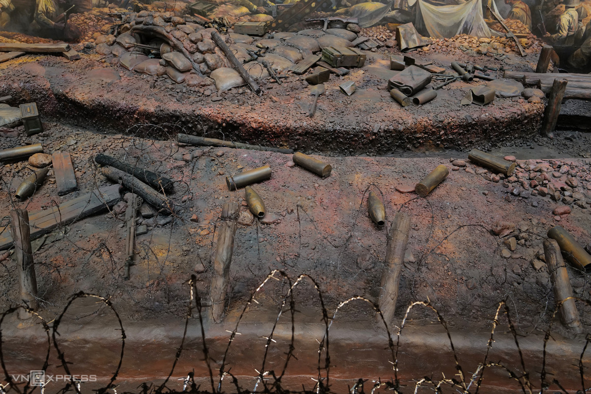 Vỏ quả đạn pháo cũng như hầm hào được tái hiện bằng màu sắc sống động.