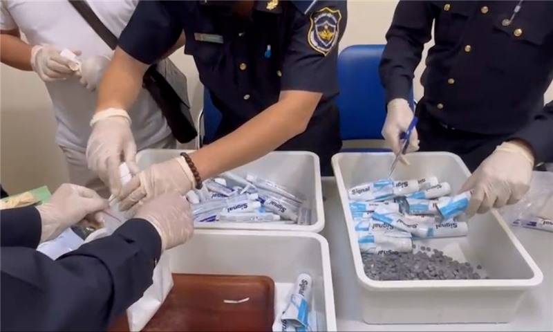 Sau đó, Chi cục Hải quan cửa khẩu Sân bay quốc tế Tân Sơn Nhất phối hợp Cục Cảnh sát Điều tra tội phạm về ma túy-Bộ Công an và Phòng Cảnh sát Điều tra tội phạm về ma túy-Công an TP Hồ Chí Minh tiến hành kiểm tra, phát hiện trong 4 vali, ngoài các vật dụng cá nhân, có tổng cộng 327 tuýp kem đánh răng (chưa mở nắp, nhiều nhãn hiệu khác nhau, mỗi tuýp được đựng trong một hộp giấy riêng lẻ) và 17 chai nước súc miệng.