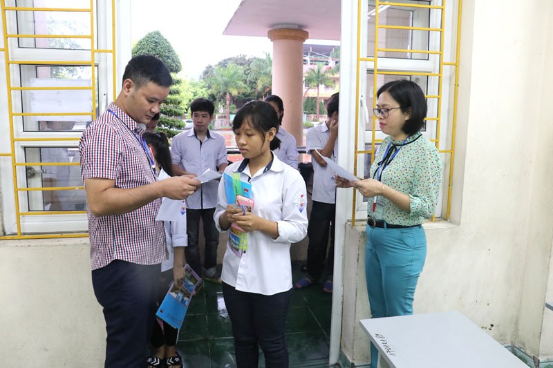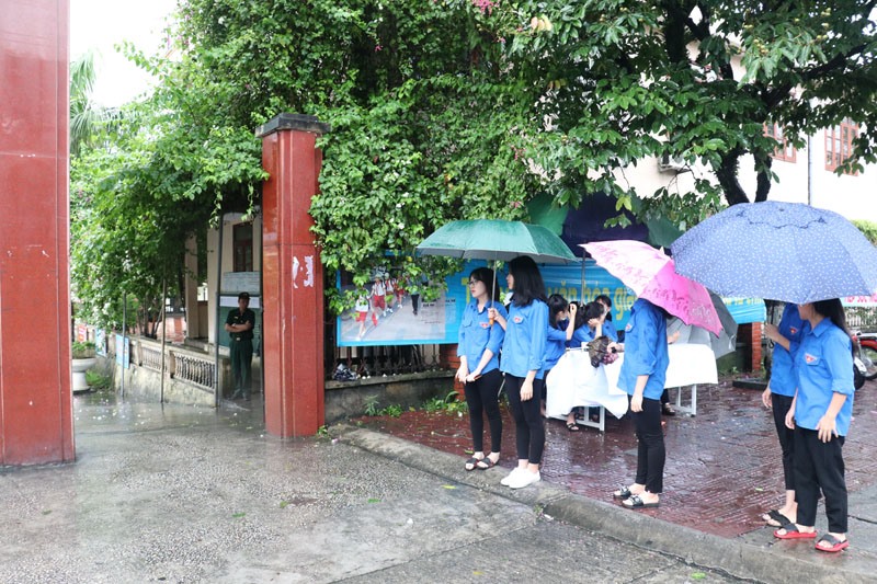 Cũng như 2 điểm thi còn lại, điểm thi tại Trường THPT Hoàng Văn Thụ mưa khá to trong thời điểm đầu giờ thi môn đầu tiên, song 100% các thí sinh từ Vàng Danh và Thượng Yên Công vẫn có mặt để làm thủ tục dự thi, tuân thủ nghiêm túc các quy định phòng thi.