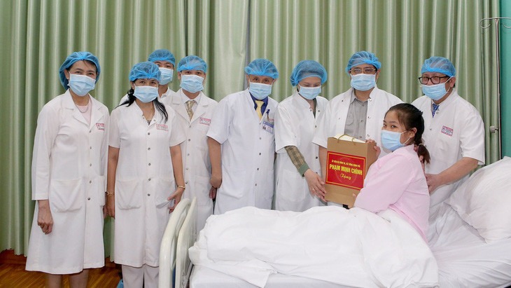 Thủ tướng thăm, tặng quà cho bệnh nhân được ghép thận xuyên Việt từ thận hiến của người chết não ở Quảng Ninh. Ca ghép được thực hiện thành công tại Bệnh viện Trung ương Huế - Ảnh: THƯỢNG HIỂN