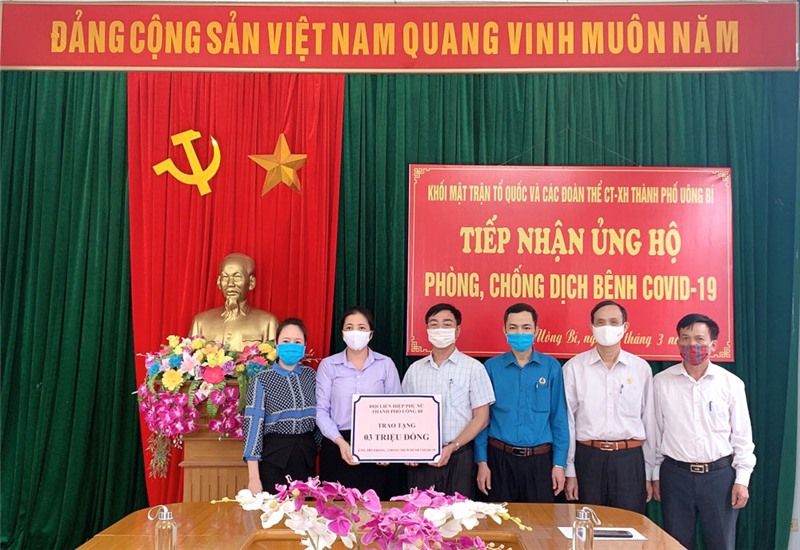 Trong đó, hưởng ứng lời kêu gọi của MTTQ thành phố Uông Bí phát động toàn dân tham gia ủng hộ phòng chống dịch Covid-19, Hội LHPN thành phố đã tham gia ủng hộ 3.000.000 đồng và vận động nhà may Hoa Dương, khu Tân Lập, phường Phương Đông may 350 chiếc khẩu trang vải miễn phí trao tặng cho HVPN và nhân dân thôn Miếu Thán, phường Vàng Danh. Hội đã thành lập 2 đội phản ứng nhanh cấp thành phố, 10 đội phản ứng nhanh cấp xã, phường, 102 tổ, nhóm tuyên truyền phòng chống dịch bệnh Covid-19 tại 102 chi Hội; phối hợp với các tổ dân khu phố phát gần 35.000 tờ rơi đến các hộ dân trên địa bàn; vận động HVPN, nhân dân ra quân tổng vệ sinh môi trường, thu gom rác thải sinh hoạt tại các khu dân cư trên địa bàn thành phố với 13.800 lượt người tham gia, dọn được 405km đường làng, ngõ xóm, thu gom 135 tấn rác các loại.