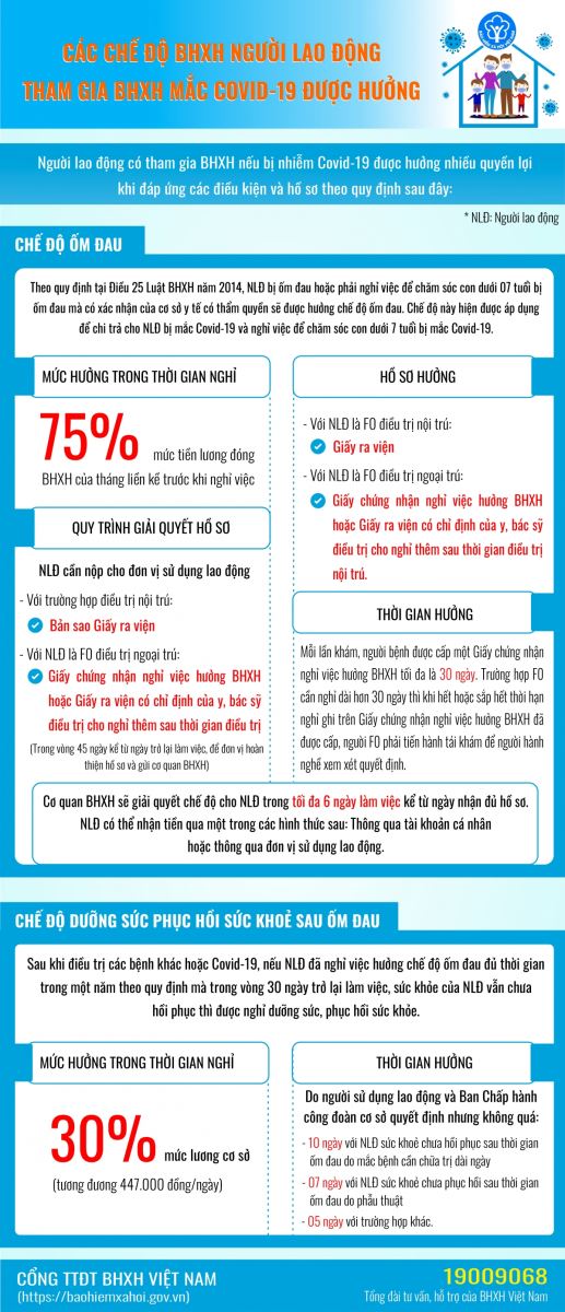 Các chế độ người lao động tham gia BHXH mắc Covid-19 được hưởng