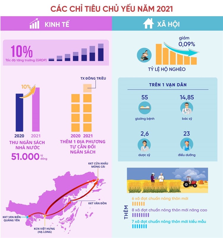 Các chỉ tiêu kinh tế - xã hội chủ yếu năm 2021 của tỉnh Quảng Ninh.