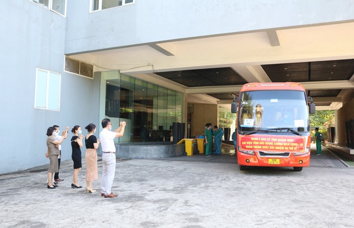 Khi dịch bệnh tại Bắc Giang đã cơ bản được kiểm soát với số lượng các ca nhiễm giảm dần và đa phần là các ca F1 đã được cách ly, đoàn nhân viên y tế Bệnh viện Việt Nam - Thụy Điển Uông Bí đã trở về Quảng Ninh sau thời gian hỗ trợ công tác chống dịch Covid-19 tại tỉnh Bắc Giang.