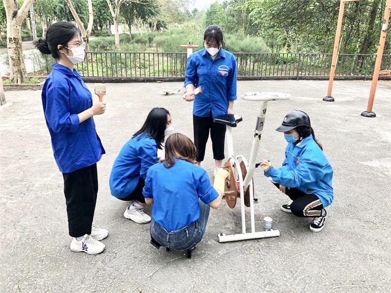Đoàn phường Bắc Sơn phối hợp xây dựng lan can bao quanh khu thể dục dụng cụ ngoài trời khu 4, tu sửa các thiết bị tập luyện thể thao.
