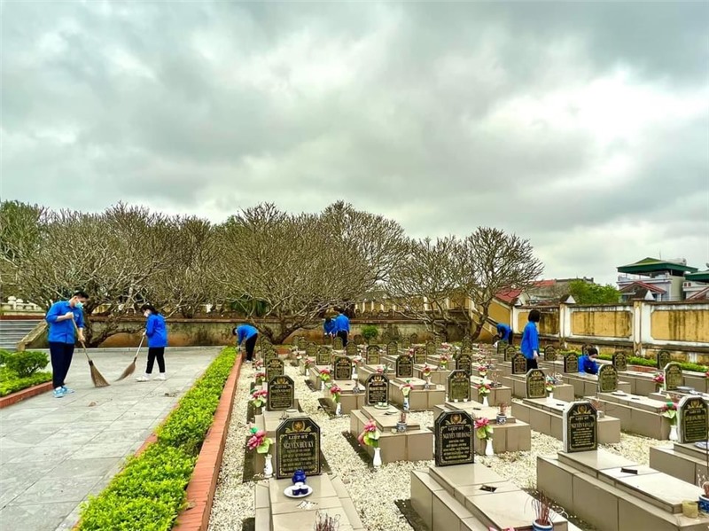 Đoàn phường Thanh Sơn dọn vệ sinh nghĩa trang liệt sĩ Thành phố.