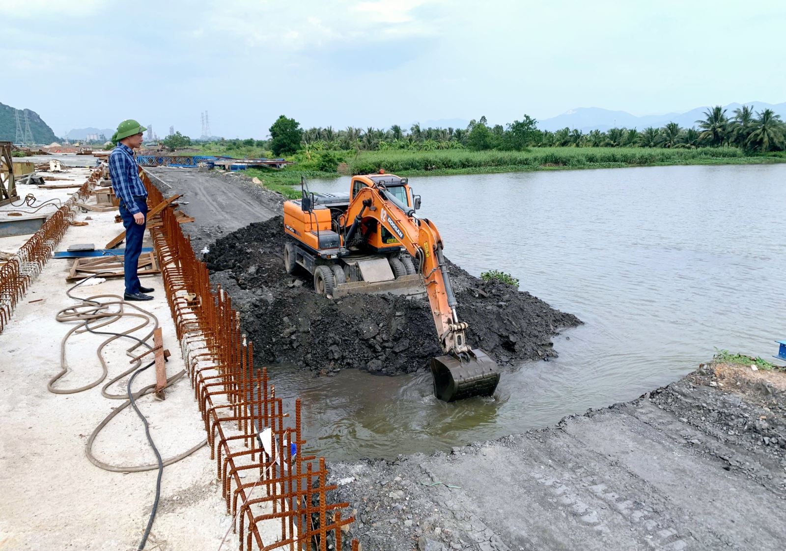 Phường Nam Khê kiểm tra tại cống thoát nước trên đường 338 - đoạn giáp thị xã Quảng Yên.