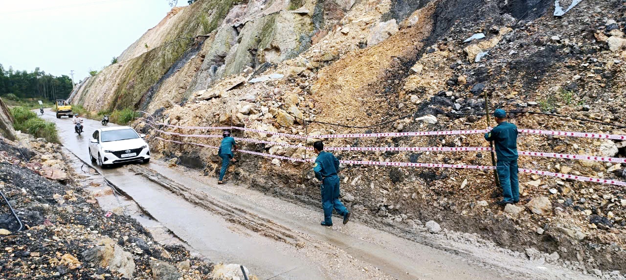 Xã Thượng Yên Công tiến hành căng dây rào chắn đoạn sạt lở tại Khe Giang để hạn chế người qua lại khi có mưa bão xảy ra.