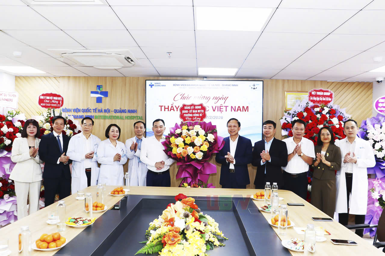 Sáng 27/2, nhân kỷ niệm 76 năm ngày Thầy thuốc Việt Nam 27/2 ( 1955-2026). Đồng chí Nguyễn Chiến Thắng - Bí thư Đảng ủy, Chủ tịch HĐND phường, đồng chí Đào Ngọc Sơn - PBT Thường trực Đảng ủy đã tới chúc mừng ban giám đốc, tập thể y bác sỹ, nhân viên Bệnh viện đa khoa Quốc tế Hà Nội - Quảng Ninh.