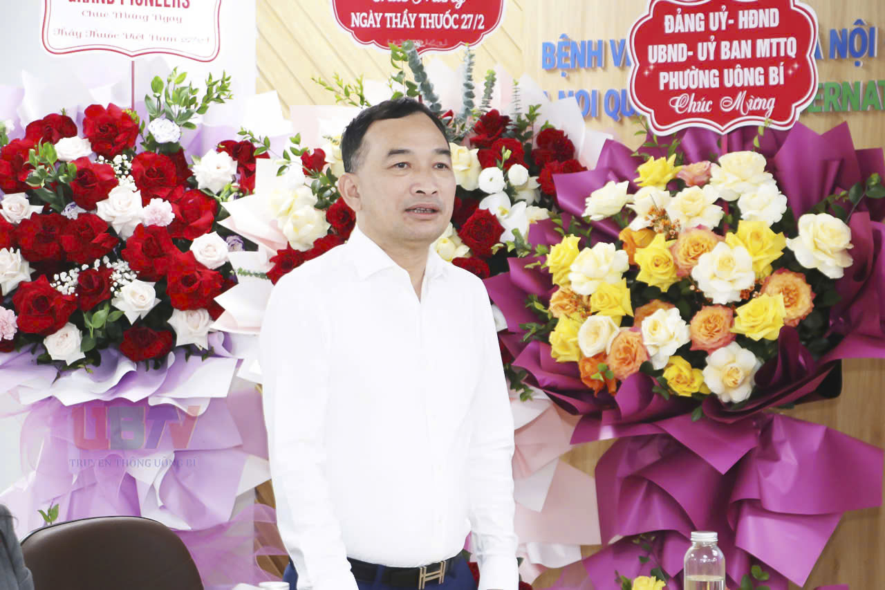 Phát biểu chúc mừng ban lãnh đạo, tập thể y bác sỹ Bệnh viện đa khoa Quốc tế Hà Nội - Quảng Ninh. Đồng chí Nguyễn Chiến Thắng - Bí thư Đảng ủy, Chủ tịch HĐND phường ghi nhận, biểu dương những kết quả mà Bệnh viện đạt được trong thời gian qua, đồng chí mong muốn đội ngũ y, bác sĩ, cán bộ, nhân viên Bệnh viện Đa khoa Quốc tế Hà Nội - Quảng Ninh tiếp tục phát huy truyền thống tốt đẹp của ngành, giữ vững y đức, không ngừng nâng cao trình độ chuyên môn, đẩy mạnh ứng dụng các tiến bộ khoa học, kỹ thuật vào công tác chẩn đoán, điều trị, nâng cao chất lượng dịch vụ y tế, đáp ứng ngày càng tốt hơn nhu cầu chăm sóc sức khỏe của Nhân dân trên địa bàn và khu vực lân cận.