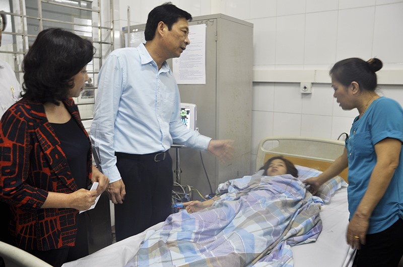 Các đồng chí lãnh đạo tỉnh thăm hỏi, động viên nạn nhân và gia đình trong vụ sét đánh tại TX Quảng Yên