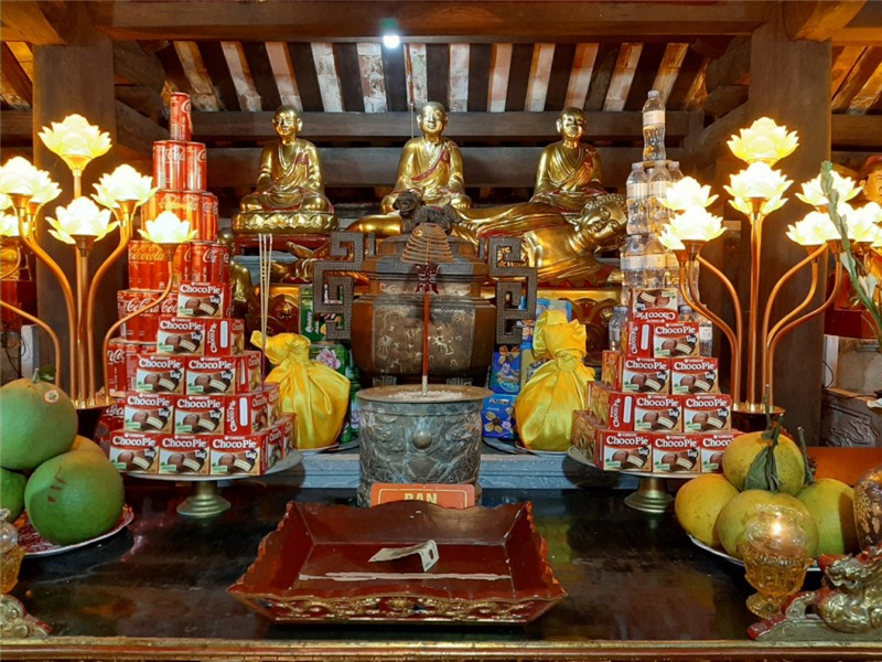 Hai hũ di cốt được bảo quản tại chùa Hoa Yên trước khi hoàn táng.