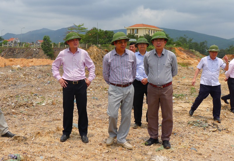 Đồng chí Đặng Huy Hậu, Phó Chủ tịch Thường trực UBND tỉnh kiểm tra việc đóng cửa bãi rác Hà Khẩu (TP Hạ Long), tháng 5/2017. Ảnh: Thu Trang