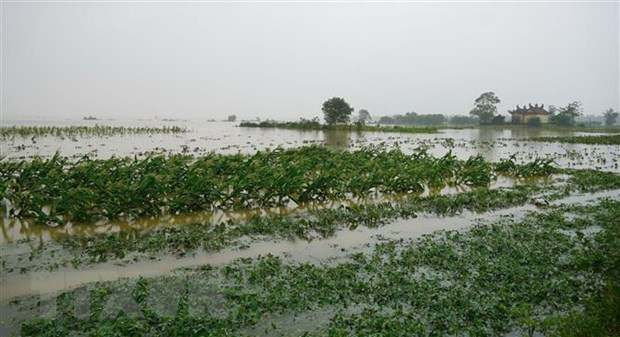 Mưa lớn kéo dài từ ngày 31/3-3/4 đã khiến nhiều diện tích hoa màu ở miền Trung bị ngập sâu trong nước lũ và có nguy cơ mất trắng. (Ảnh: TTXVN phát)