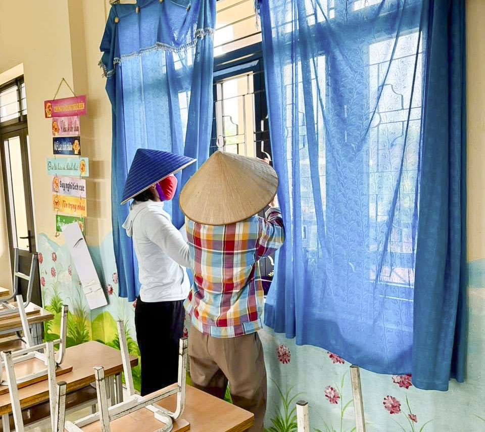Theo ghi nhận, nhiều trường đã khẩn trương gia cố cơ sở vật chất như chằng chống mái tôn, gia cố cửa sổ, che chắn phòng học, di dời thiết bị, vật dụng dễ bị ảnh hưởng bởi mưa bão đến nơi an toàn. Cùng với đó, cán bộ, giáo viên phối hợp với chính quyền địa phương tiến hành kiểm tra, rà soát các hạng mục có nguy cơ mất an toàn để kịp thời xử lý.