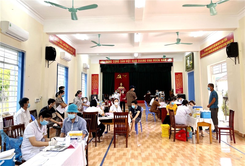 Điểm tiêm chủng vắcxin phòng Covid-19 tại xã Thượng Yên Công.