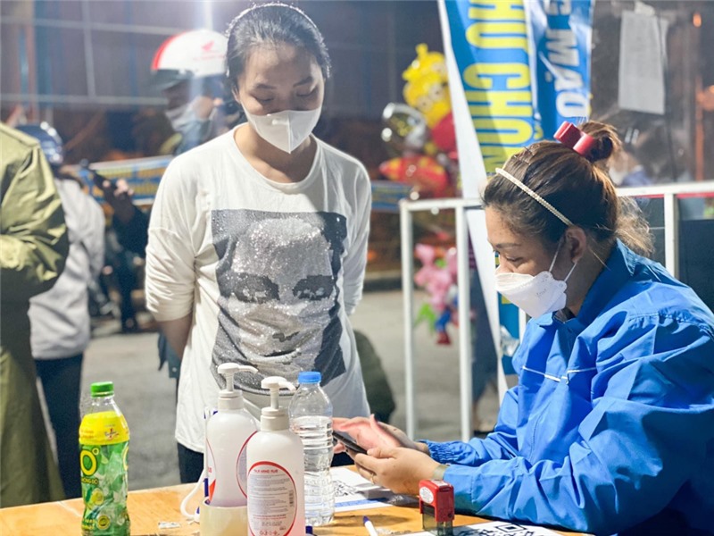 ĐVTN phường Mạo Khê (TX Đông Triều) hướng dẫn người dân khai báo y tế điện tử tại chốt kiểm soát thông tin cầu Đá Vách.