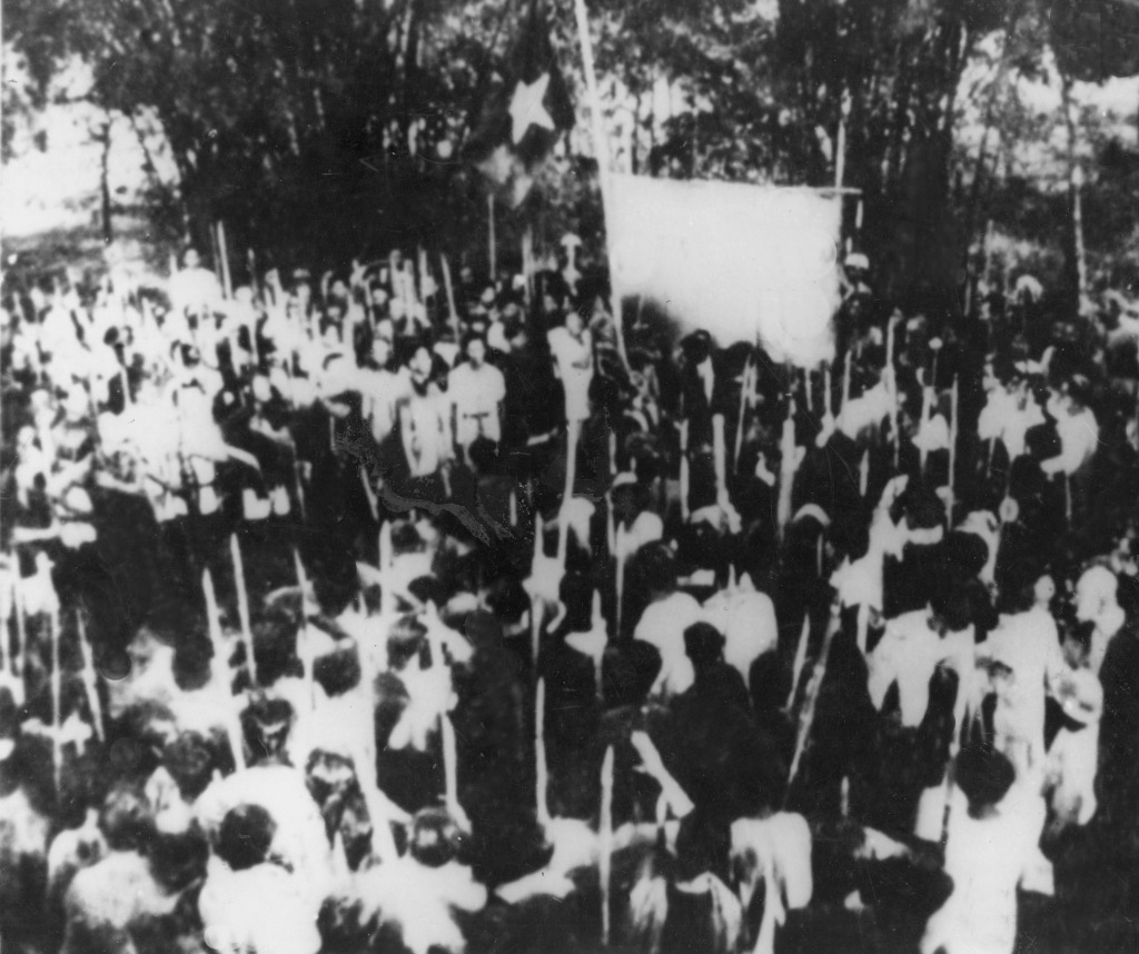 Nhân dân với tầm vông vạt nhọn kéo vào nội thành tham gia Tổng khởi nghĩa ở Sài Gòn, ngày 25/8/1945.