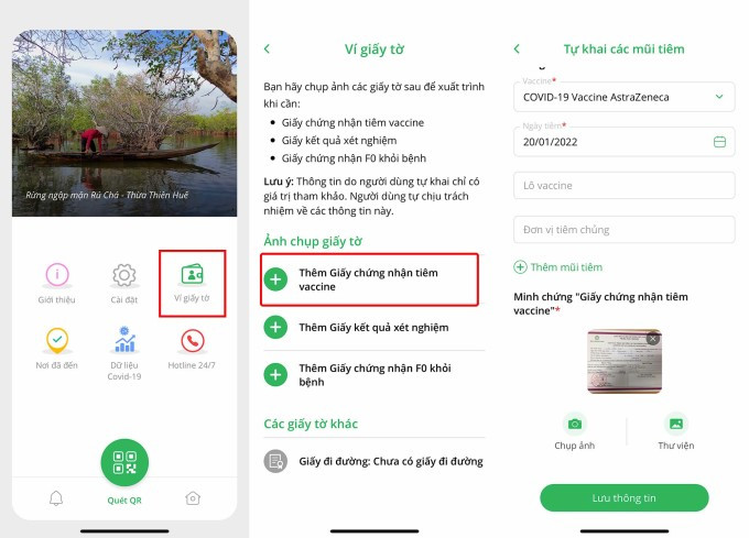 Người dùng có thể truy cập tính năng Ví giấy tờ để khai báo mũi tiêm.