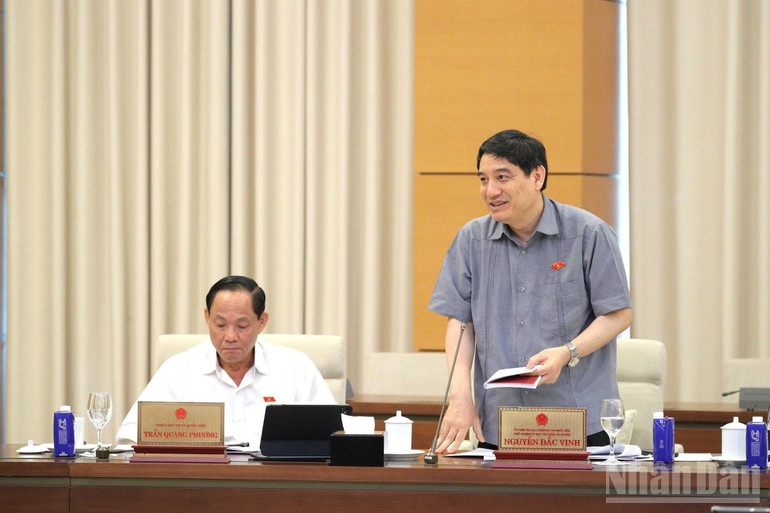 Báo cáo tại phiên họp, Chủ nhiệm Ủy ban Văn hóa và Xã hội Nguyễn Đắc Vinh phản ánh, có ý kiến đề nghị bổ sung, làm rõ thêm đối tượng điều chỉnh gồm nhà giáo làm việc theo chế độ hợp đồng, nhà giáo kiêm nhiệm chức vụ quản lý, nhà giáo thỉnh giảng, nhà giáo đã nghỉ hưu, nhân viên trường học.