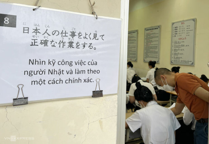 Bảng ghi nhớ bên ngoài một lớp đào tạo lao động đi làm việc tại Nhật Bản ở Hà Nội, tháng 5/2023. Ảnh: Hồng Chiêu