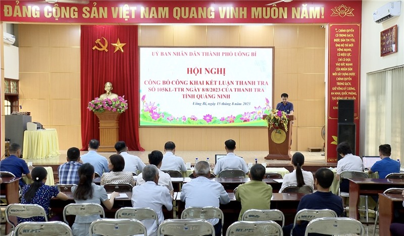 Quang cảnh Hội nghị công bố công khai Kết luận Thanh tra số 105/KL-TTr ngày 08/8/2023 của Thanh tra tỉnh Quảng Ninh.
