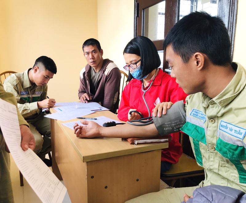 Các cán bộ, nhân viên và người lao động Công ty được khám sàng lọc trước khi tham gia hiến máu.