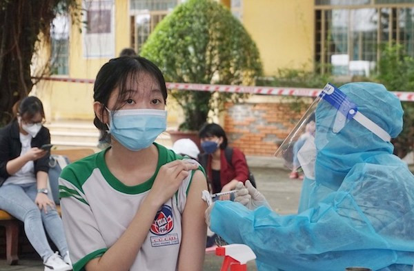 Nhân viên y tế tiêm vaccine cho học sinh lớp 12 ở huyện Củ Chi, TP Hồ Chí Minh. Ảnh: Thành ủy TP Hồ Chí Minh.