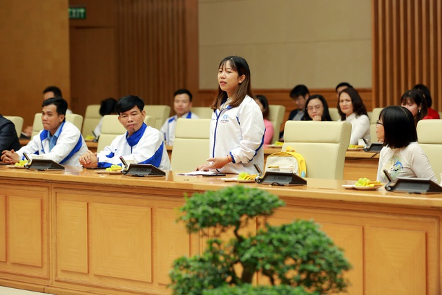 Cô giáo mầm non Võ Thị Kim Trang công tác tại Trường Mầm non Sơn Định (xã Sơn Định, huyện Sơn Hòa, tỉnh Phú Yên), thành viên trẻ tuổi nhất, rất xúc động khi được nghe chia sẻ của các thầy cô là những anh chị đi trước về sự nghiệp trồng người, vun đắp cho "mầm non tương lai của đất nước" - Ảnh: VGP/Đình Nam