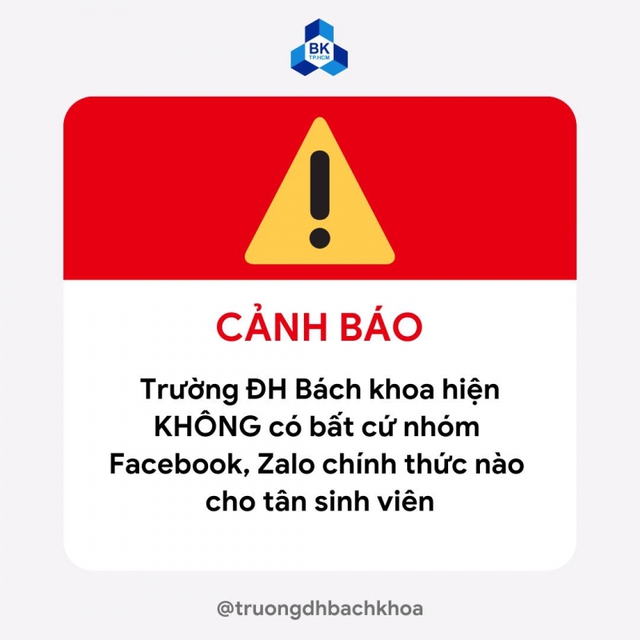 Trường Đại học Bách khoa TPHCM khẳng định, hiện trường không có bất cứ fanpage, nhóm Facebook, Zalo chính thức nào cho sinh viên tất cả khóa, cũng như cho khóa 2023.