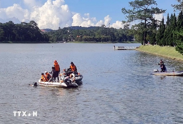 Tìm kiếm nạn nhân bị đuối nước ở Lâm Đồng. (Nguồn: TTXVN)