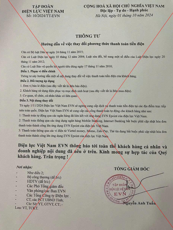 Các văn bản giả mạo Tập đoàn Điện lực Việt Nam.