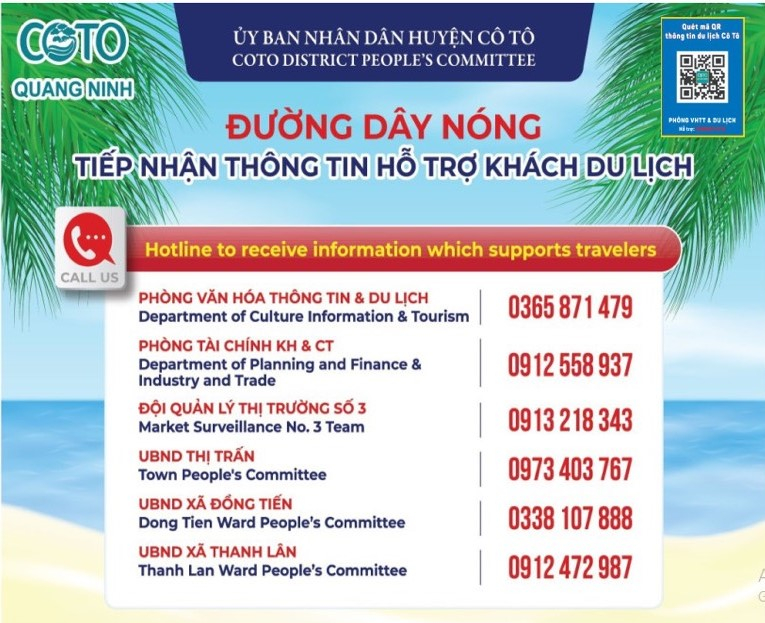 Các số điện thoại đường dây nóng tại huyện Cô Tô.