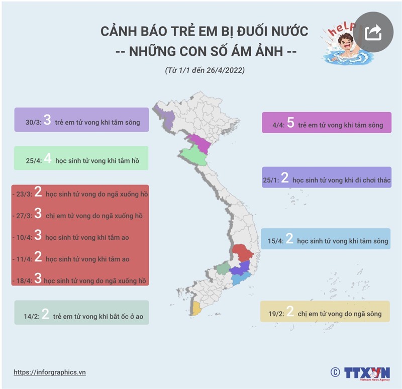 Từ đầu năm đến nay, trên cả nước đã xảy ra nhiều vụ đuối nước ở trẻ nhỏ và học sinh dẫn đến tử vong, mà nguyên nhân chủ yếu là do tắm sông, suối, ao, hồ...