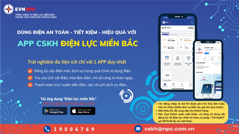 Để nắm bắt được tình hình sử dụng điện của mình, quý khách hàng có thể cài đặt App CSKH ĐIỆN LỰC MIỀN BẮC trên điện thoại thông minh để thực hiện tra cứu các thông tin về sử dụng điện, tra cứu hóa đơn tiền điện và thực hiện thanh toán tiền điện một cách nhanh chóng và hiệu quả, tra cứu quá trình thanh toán tiền điện. Cách cài đặt được hướng dẫn qua Website: cskh.npc.com.vn hoặc qua đường link gửi qua tin nhắn trên ứng dụng zalo (đối với các khách hàng sử dụng điện trên địa bàn tỉnh Quảng Ninh có đăng ký nhận tin nhắn qua ứng dụng zalo).