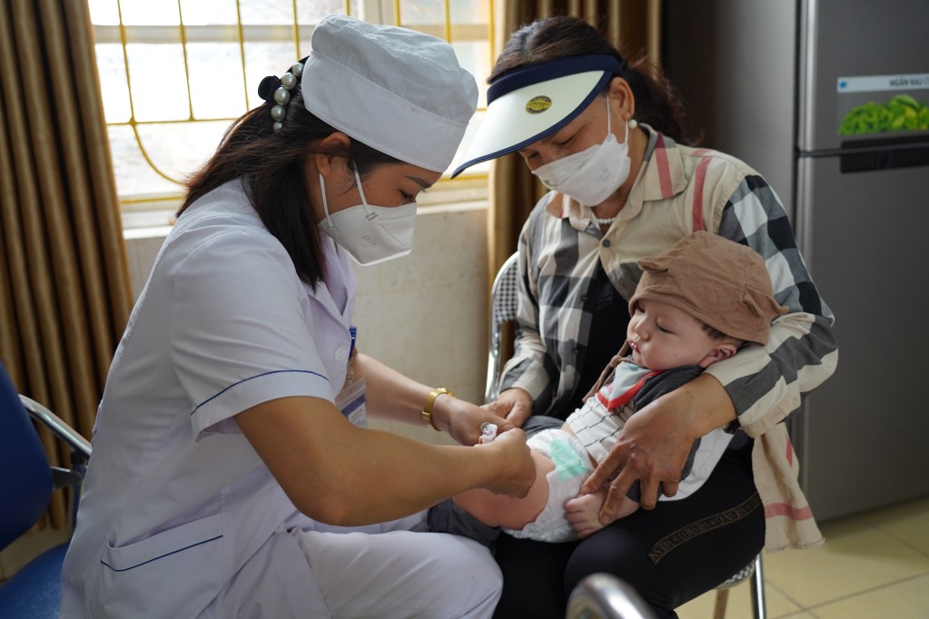 Tiêm vắc-xin phòng bệnh cho trẻ tại Trạm Y tế phường Hoành Bồ (TP Hạ Long).