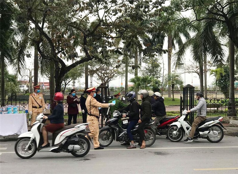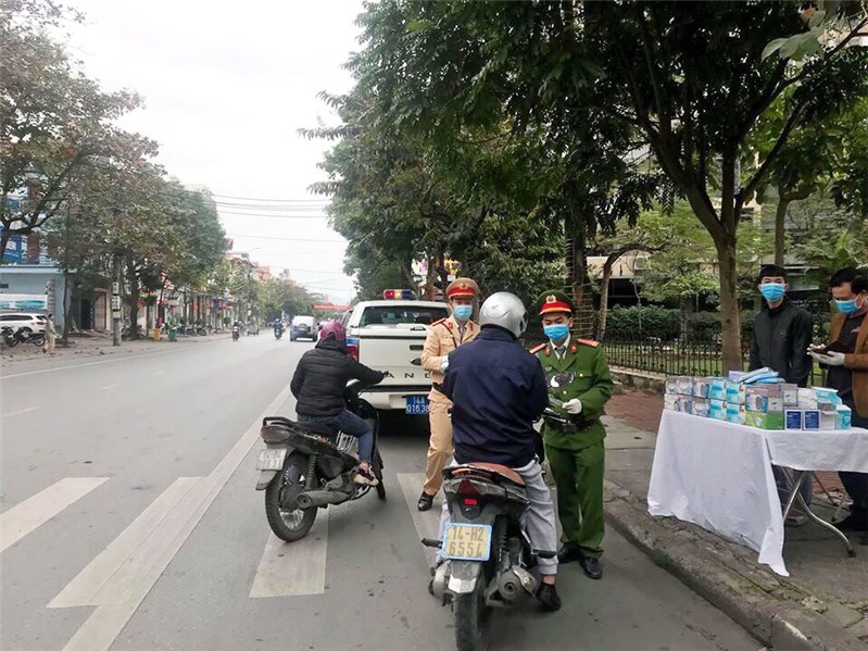 Cảnh sát giao thông Uông Bí phát khẩu trang miễn phí cho người dân