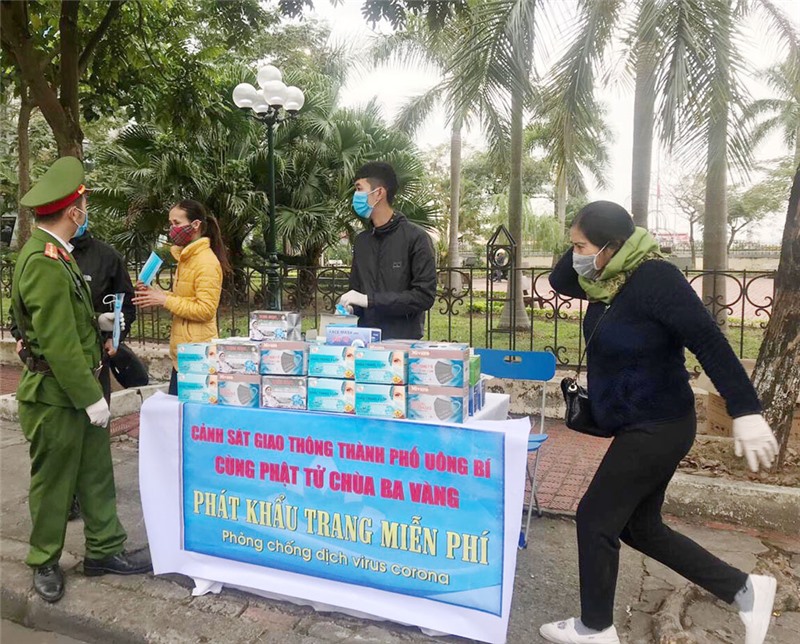 Sáng nay 10/02, Đội CSGT Công an thành phố Uông Bí phối hợp với bản hội phật tử chùa Ba Vàng tổ chức phát khẩu trang miễn phí, tuyên truyền hướng dẫn người dân khi đến khu vực đông người, tham gia phương tiện công cộng phải đeo khẩu trang đúng quy cách để phòng chống dịch bệnh nCoV, đồng thời tham gia giao thông chấp hành nghiêm qui định của pháp luật để đảm bảo an toàn cho bản thân, cho mọi người.