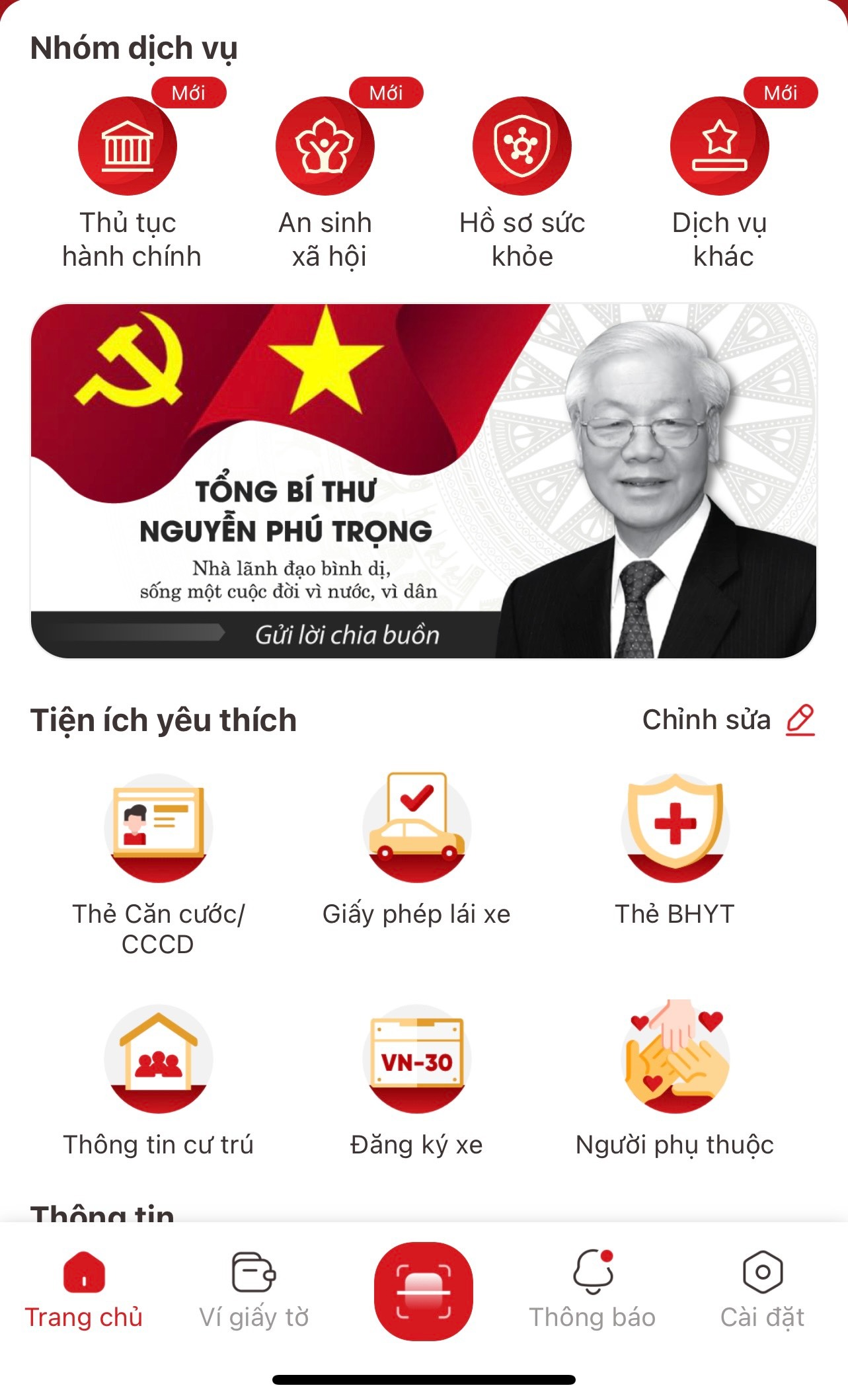 Ngày 24/7, Bộ Công an đã cập nhật tính năng Sổ tang điện tử trên VNeID để bày tỏ cảm kích và biết ơn đến Tổng Bí thư Nguyễn Phú Trọng, người đã cống hiến cả cuộc đời cho Đảng, Nhà nước và nhân dân Việt Nam. Thông qua tính năng này, người dân có thể gửi lời chia buồn, tri ân, chia sẻ ký ức về Tổng Bí thư Nguyễn Phú Trọng.