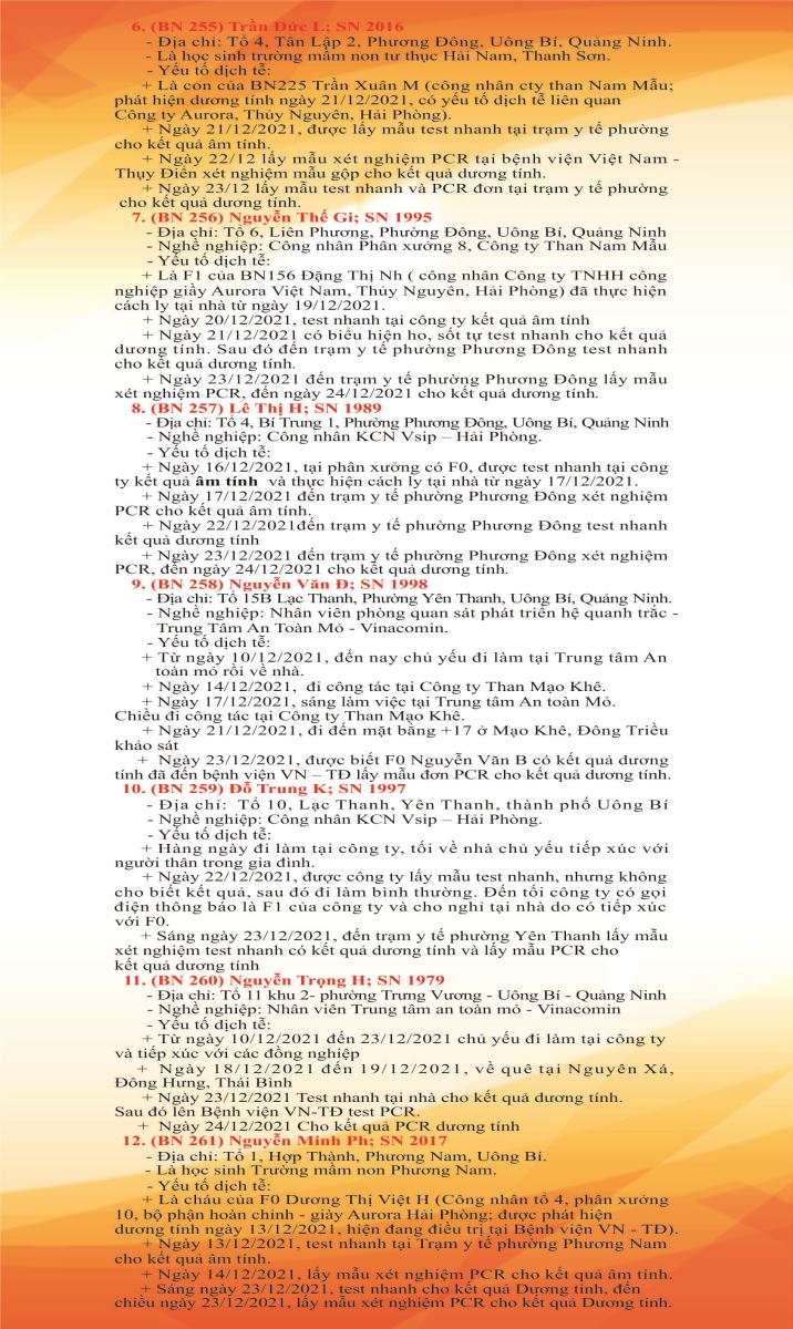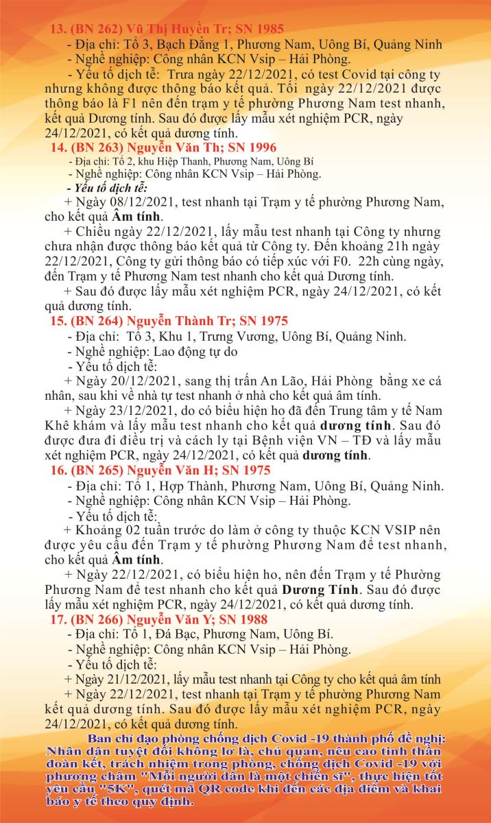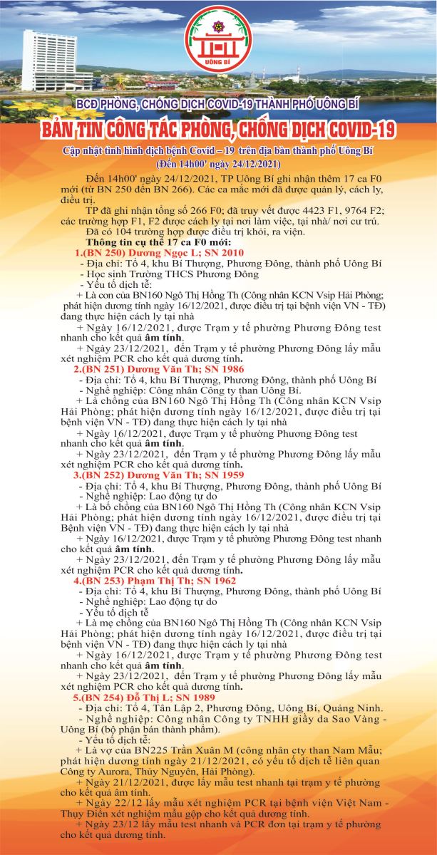 Cập nhật tình hình dịch bệnh Covid-19 trên địa bàn thành phố Uông Bí (đến 14h00 ngày 24/12/2021)