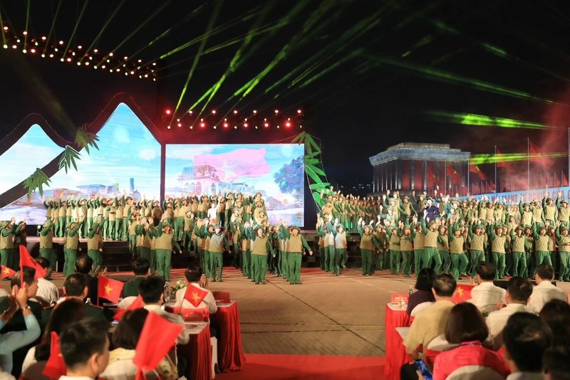 Tối 5/5, cầu truyền hình "Dưới lá cờ Quyết Thắng" được truyền hình trực tiếp tại Quảng trường Ba Đình, Thủ đô Hà Nội.
