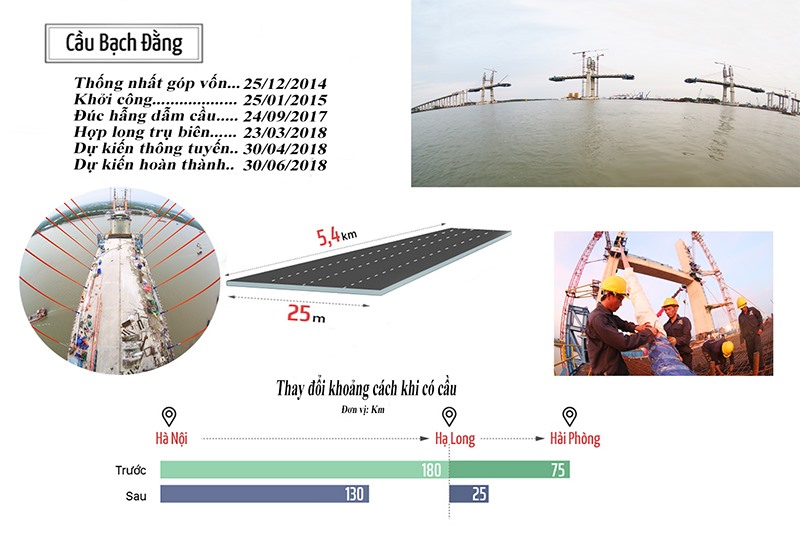 Chỉ còn 23m nữa, biểu tượng lịch sử về kỹ thuật thi công cầu đường của ngành GT-VT Việt Nam chính thức hợp long để chuyển sang giai đoạn hoàn thiện và đưa vào sử dụng trong tháng 6/2018. Cầu Bạch Đằng đang từng ngày vươn dài và sẽ bừng sáng trên dòng sông huyền thoại Bạch Đằng, nơi ghi dấu những chiến công lẫy lừng của dân tộc trong cuộc chiến chống giặc ngoại xâm.