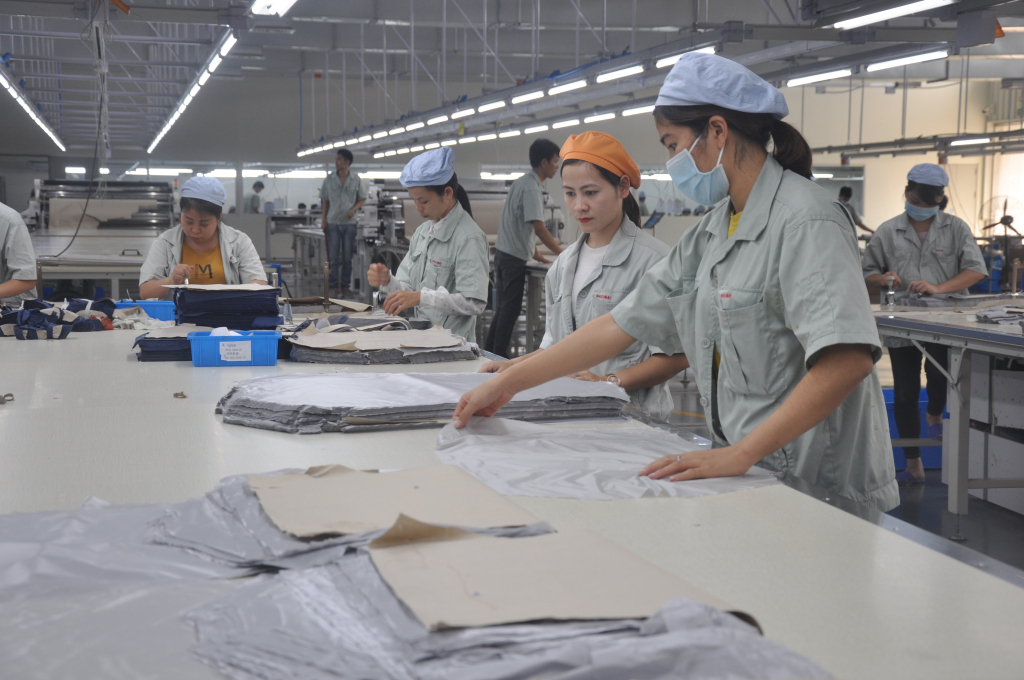 Sản xuất tại Công ty TNHH May mặc Hoa Lợi Đạt (KCN Cảng biển Hải Hà).