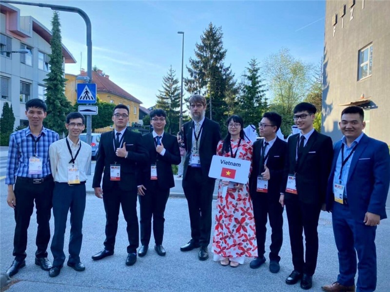 Lê Thùy Mai Anh (thứ tư từ phải sang) đoạt Huy chương Đồng kỳ thi Olympic Vật lý Châu Âu năm 2022. Ảnh nhân vật cung cấp