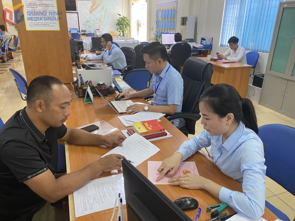 Cán bộ Trung tâm Phục vụ Hành chính công chi nhánh huyện Vân Đồn hướng dẫn công dân làm TTHC. Ảnh Ngọc Trâm