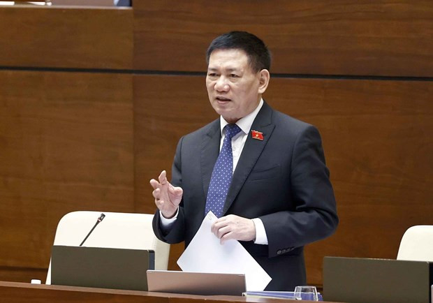 Bộ trưởng Bộ Tài chính Hồ Đức Phớc trả lời chất vấn. (Ảnh: Doãn Tấn/TTXVN)