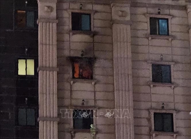 Hiện trường vụ hỏa hoạn tại khách sạn ở Bucheon, Hàn Quốc, ngày 22/8/2024. (Ảnh: TTXVN)