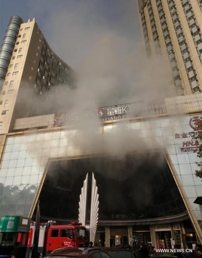 Hiện trường vụ cháy khách sạn HNA Platinum Mix Hotel, tại thành phố Nam Xương, tỉnh Giang Tây, Trung Quốc, ngày 25-2-2017. (Ảnh: Xinhua)